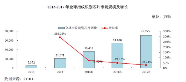 据CCID数据统计,2014年全球指纹芯片出货量为2.1亿颗,而2015年则增长至3.6亿颗,增长率达到73.02%。预计2016年全球指纹芯片出货量将达到5.5亿颗,增长率接近50%。原本就处于上升通道的指纹识别,再加上今年Apple Pay进入中国掀起的移动支付大战助推,相信指纹芯片出货量要达到预期难度并不大。